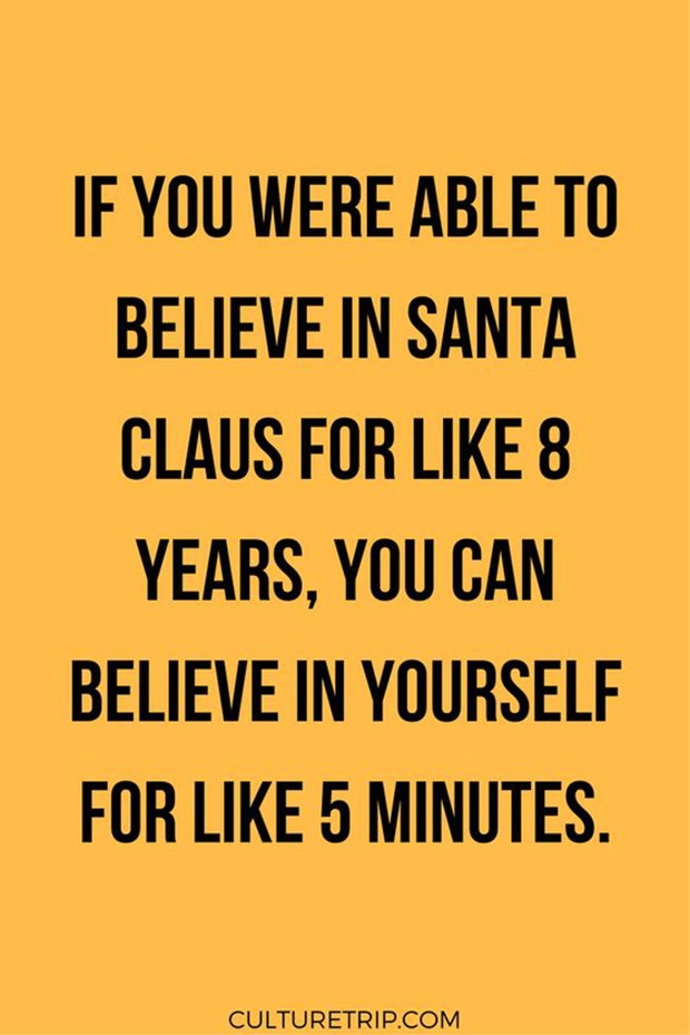 "If you were able to believe in Santa Claus for like 8 years, you can believe in yourself for like 5 minutes."— unknown