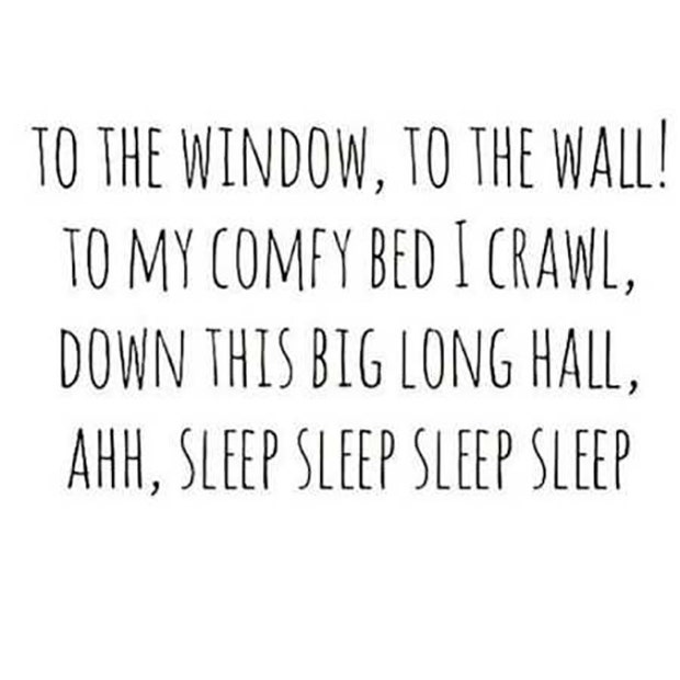 "To the window, to the wall! To my comfy bed I crawl, down this big long hall, ahh, sleep sleep sleep sleep." — unknown