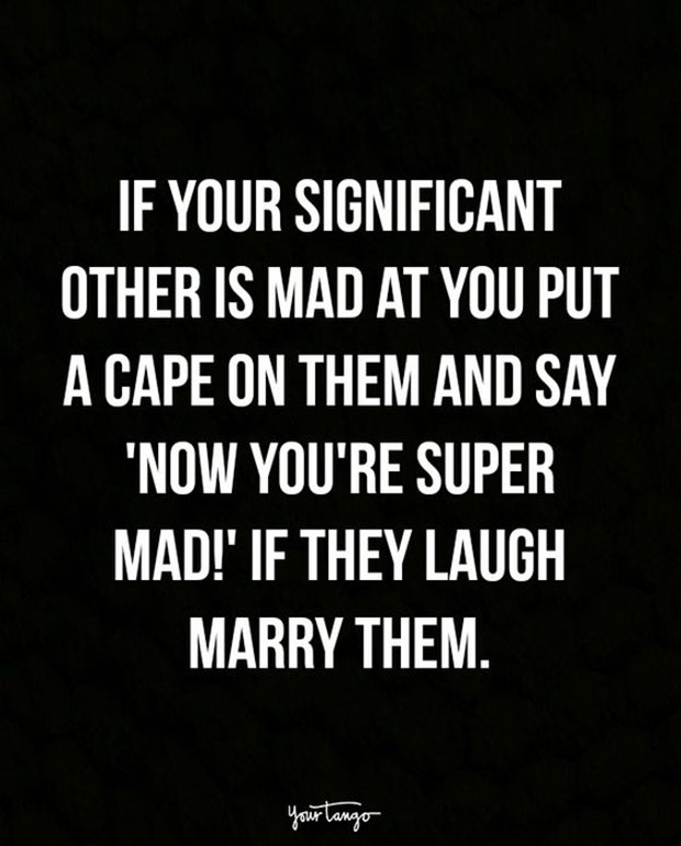"If your significant other is mad at you, put a cape on them and say, 'Now you're super mad!'. If they laugh, marry them."— unknown