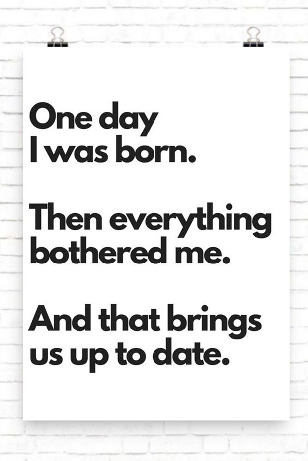 "One day I was born. Then everything bothered me. And that brings us up to date." — unknown
