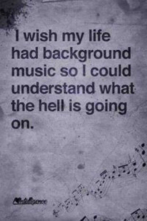 "I wish my life had background music so I could understand what the hell is going on." — unknown