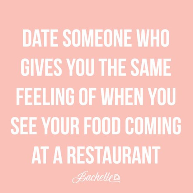 "Date someone who gives you the same feeling of when you see your food coming at a restaurant."— unknown