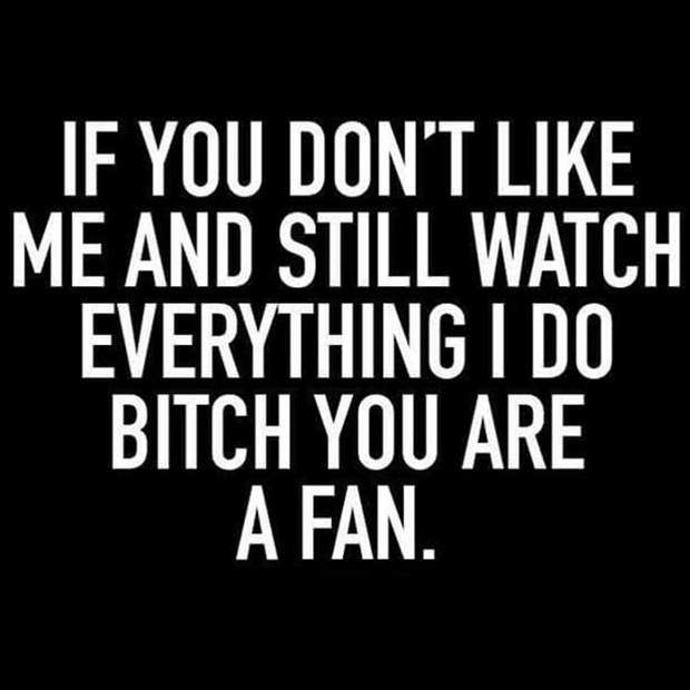 "If you don't like me and still watch everything I do, b-tch you are a fan." — unknown