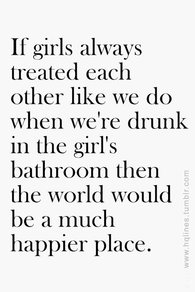 "If girls always treated each other like we do when we're drunk in the girl's bathroom then the world would be a much happier place." — unknown