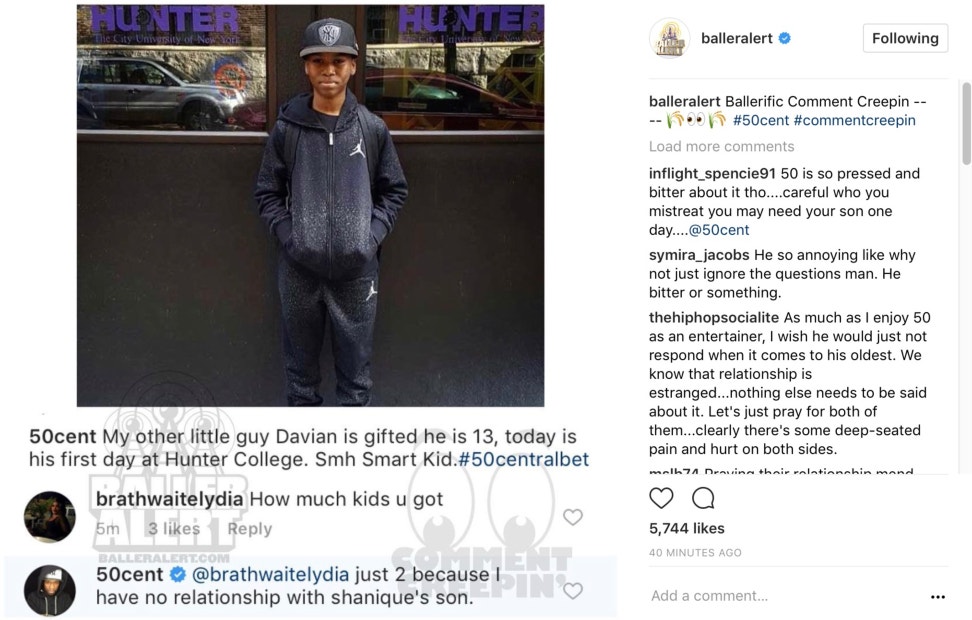 Getty / Instagram50 Cent's son told his father to "grow up" after the rapper threw shade at his mom.