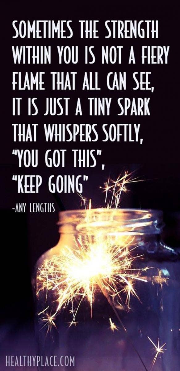 "Sometimes the strength within you is not a fiery flame that all can see, it is just a tiny spark that whispers softly, "you got this, keep going."—Unknown