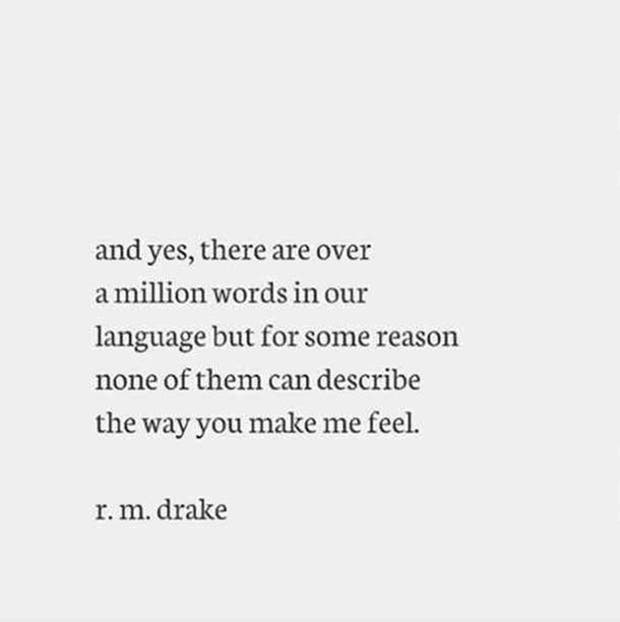 And yes, there are over a million words in our language but for some reason none of them can describe the way you make me feel. — r.m. drake