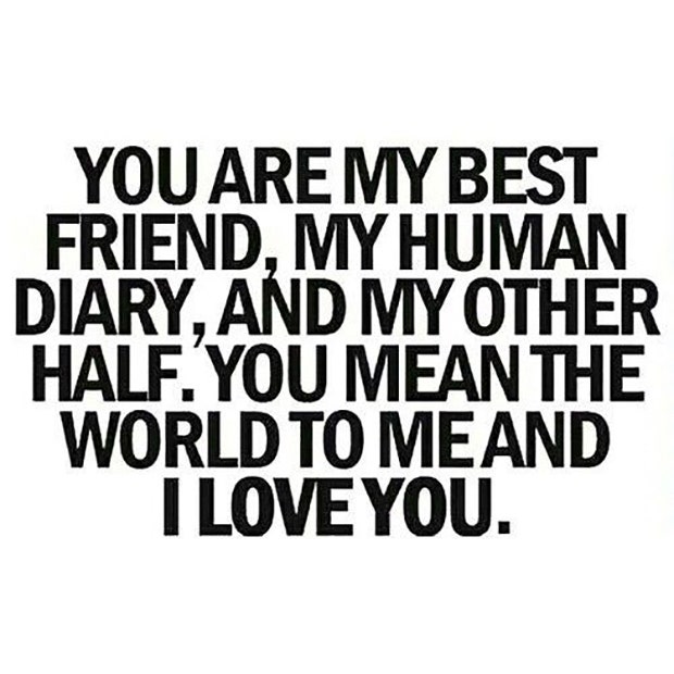 You are my best friend, my human diary, and my other half. You mean the world to me and I love you. — Unknown