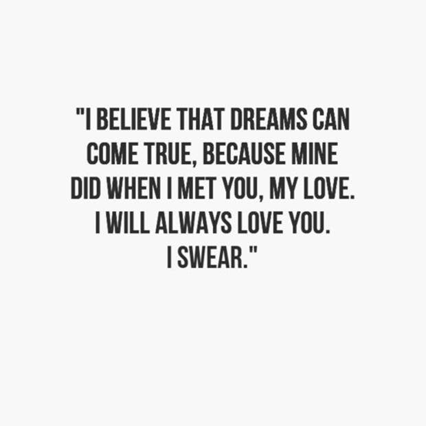 I believe that dreams can come true, because mine did when I met you, my love. I will always love you. I swear. — Unknown