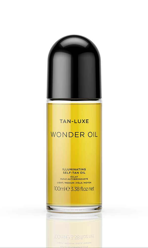 The dry-oil formula hydrates, sans greasiness, smells more like candy than DHA, and goes on clear via a mess-proof rollerball applicator. The tan itself develops over two hours, which is just enough time to tear your eyes away from the jaw-droppingly chic packaging.