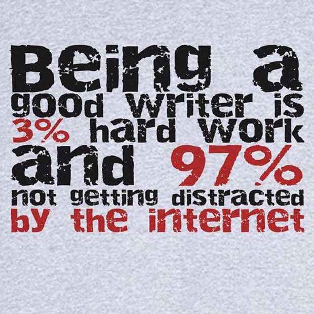 "Being a good writer is three percent hard work and ninety-seven percent not getting distracted by the internet." - Unknown