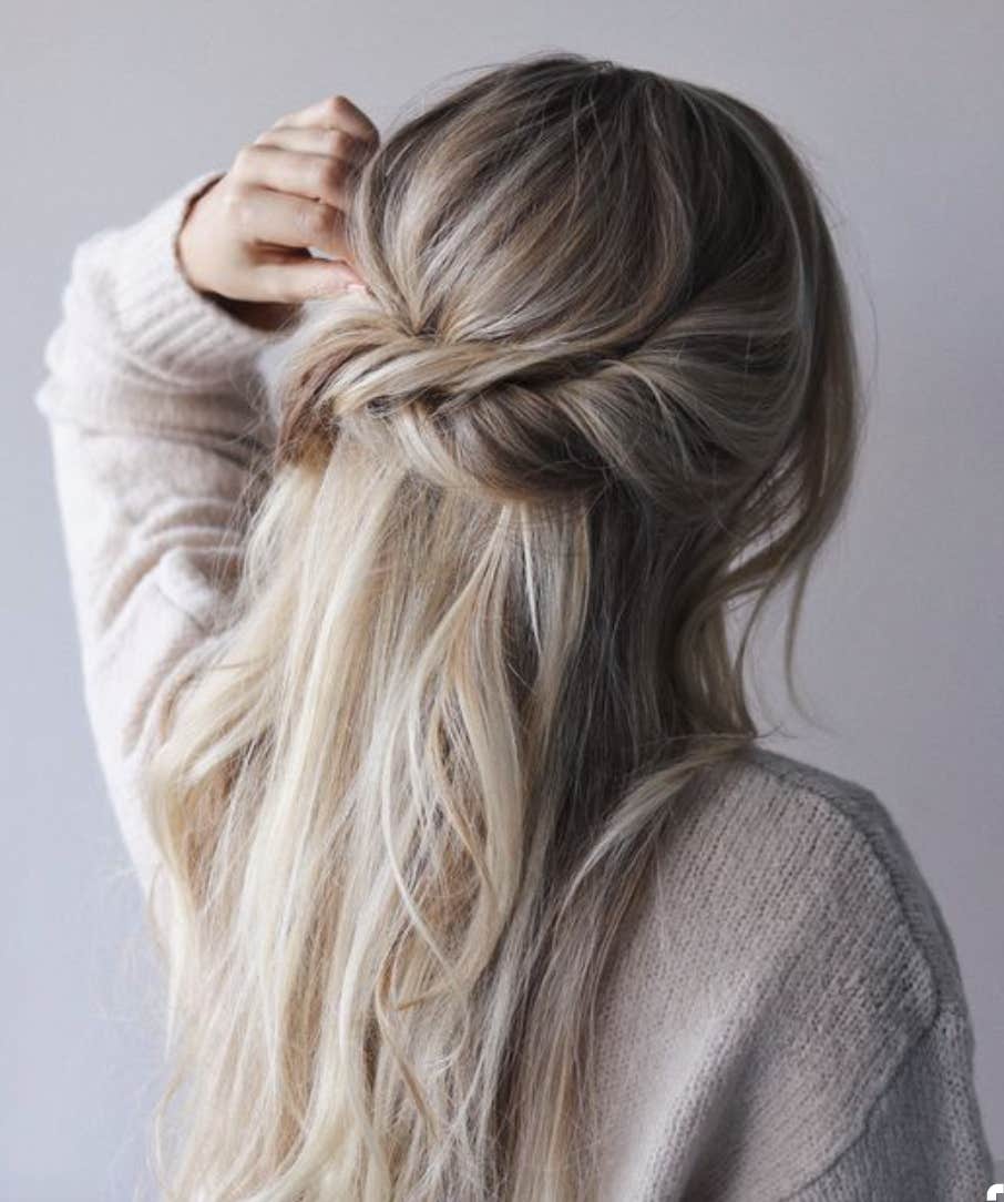 If mastering the French braid isn't something you have down yet, don't fret. Twisting your hair into two sections and pinning back is a great alternative like the one pictured above.