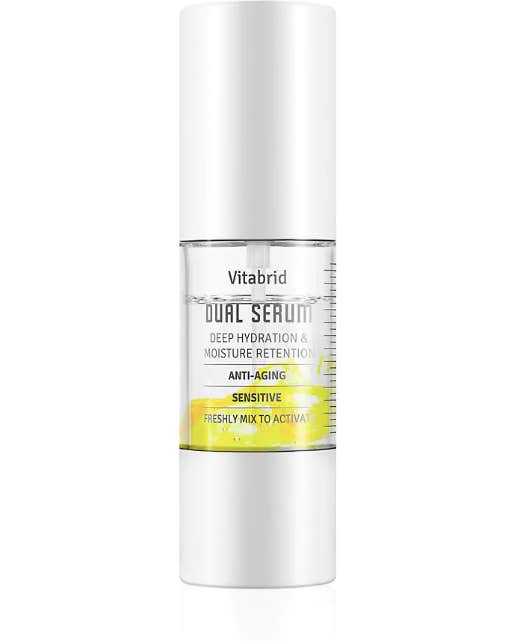 The Dual Serum is freshly mixed and easily absorbed with hybridized Vitabrid CG and peptides for a skin-brightening formula that improves tone, texture, firmness, and elasticity while moisturizing, hydrating, and supplying nutrients to the skin to protect it from external stress factors.