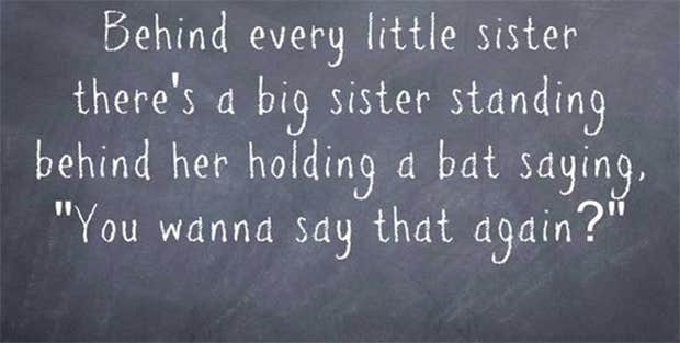 “Behind every little sister there’s a big sister standing behind her holding a bat saying ‘You wanna say that again?’”— Unknown