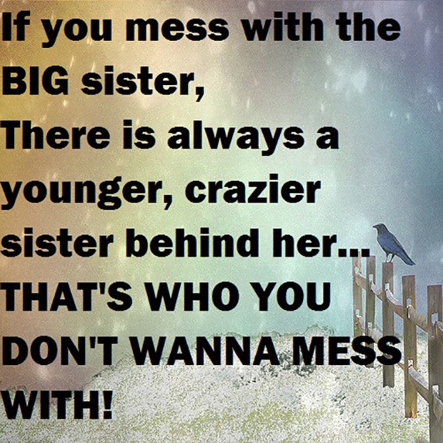 “If you mess with the big sister, there is always a younger, crazier sister behind her… That’s who you don’t wanna mess with!” — Unknown