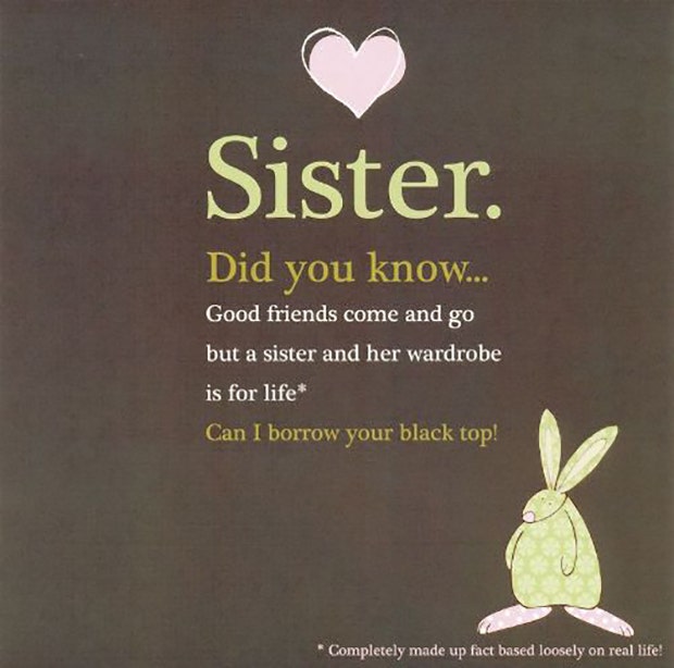 “Sister. Did you know .. good friends come and go but a sister and her wardrobe is for life. 'Can I borrow your black top!'” —​ Unknown