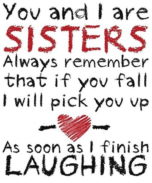 “You and I are sisters. Always remember that if you fall I will pick you up… as soon as I finish laughing.” —​ Unknown