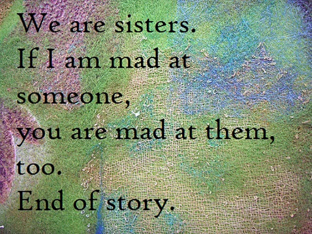 “We are sisters. If I am mad at someone, you are mad at them too. End of story.” —​ Unknown