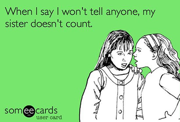 “When I say I won’t tell anyone, my sister doesn’t count.” —​ Unknown