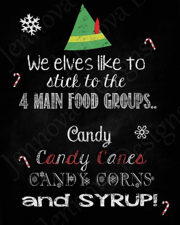 "We elves like to stick to the 4 main food groups... candy, candy canes, candy corns and syrup!"— Buddy the Elf