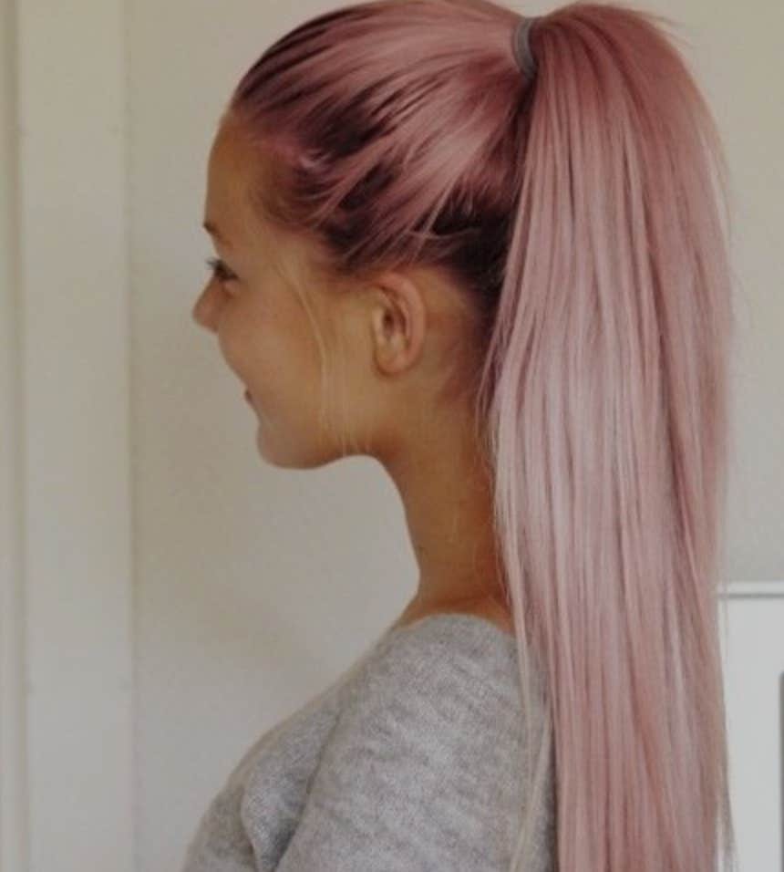 This long pony is giving us serious Ariana Grande vibes. The darker roots really add dimension to the strands and make the rose pop.