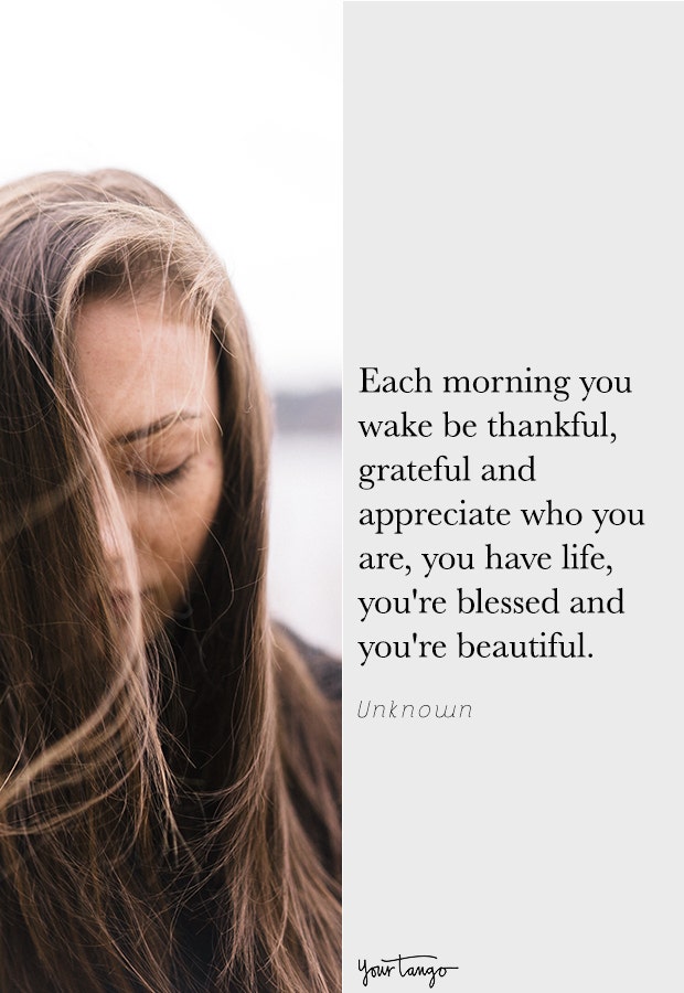 "Each morning you wake be thankful, grateful and appreciate who you are, you have life, you're blessed and you're beautiful." — Unknown