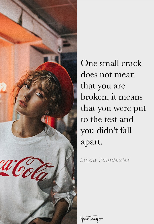 "One small crack does not mean that you are broken, it means that you were put to the test and you didn't fall apart." — Linda Poindexter