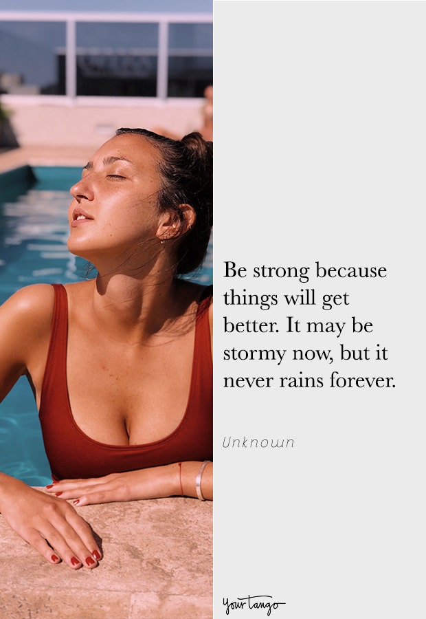 "Be strong because things will get better. It may be stormy now, but it never rains forever." — Unknown