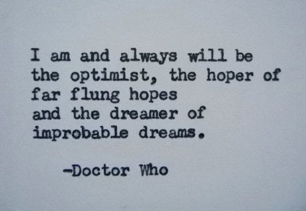 "I am and always will be the optimist, the hoper of far flung hopes and the dreamer of improbable dreams."— Doctor Who
