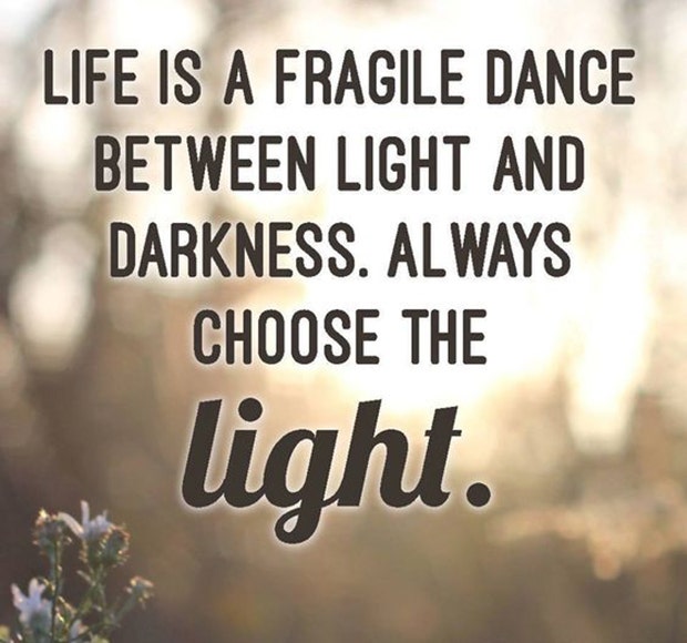 "Life is a fragile dance between light and darkness. Always choose the light." — Unknown