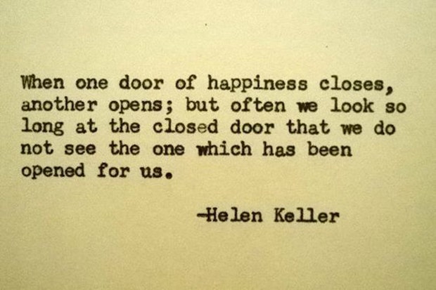 "When one door of happiness closes, another opens; but often we look so long at the closed door that we do not see the one which has been opened for us."— Helen Keller