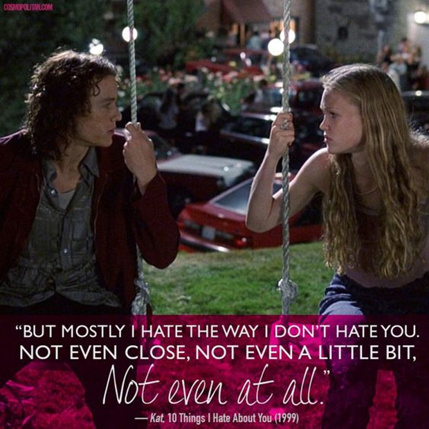 "But mostly I hate the way I don't hate you. Not even close, not even a little bit, not even at all." — Kat, 10 Things I Hate About You