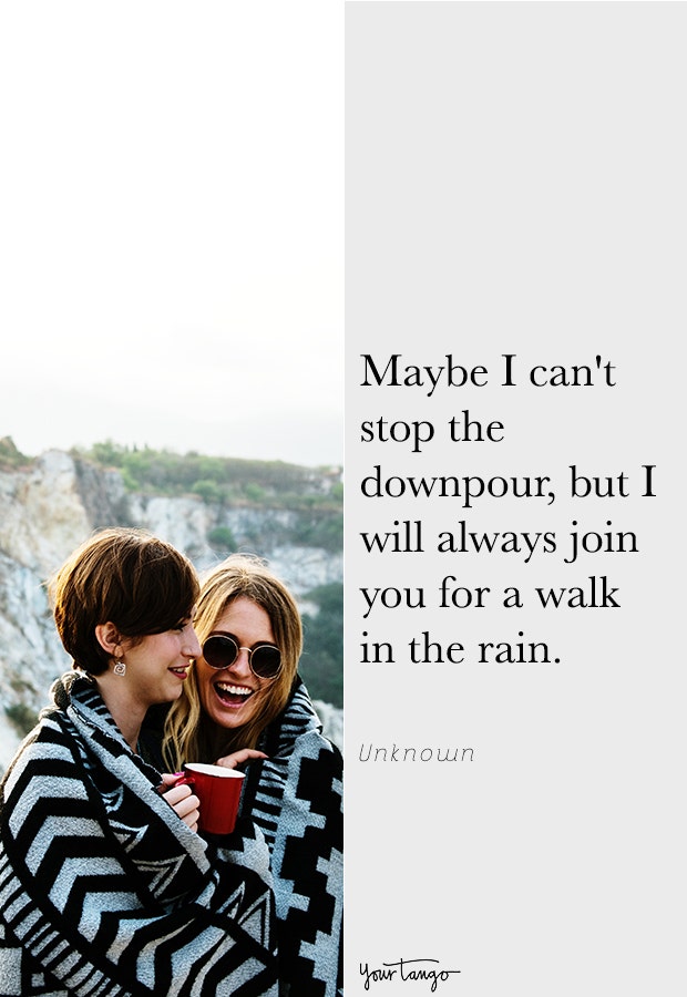 "Maybe I can't stop the downpour, but I will always join you for a walk in the rain." — Unknown