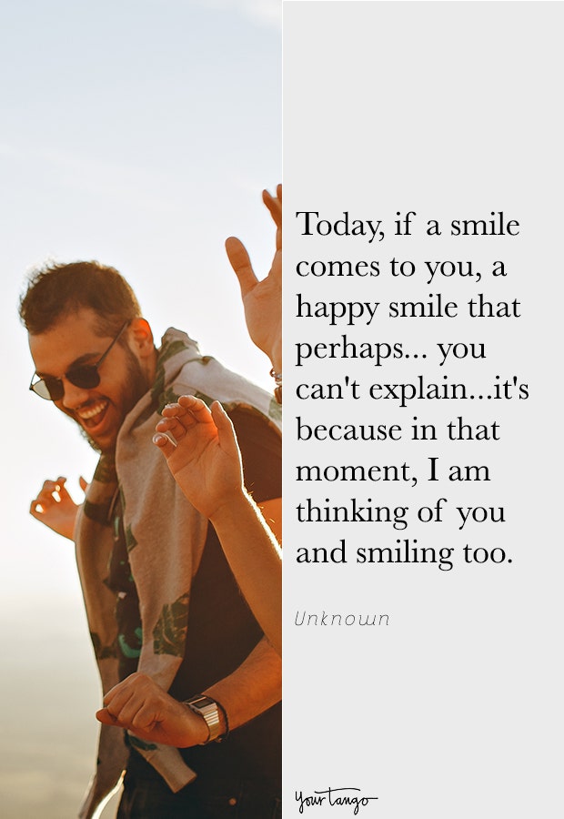 "Today, if a smile comes to you, a happy smile that perhaps... you can't explain...it's because in that moment, I am thinking of you and smiling too." — Unknown