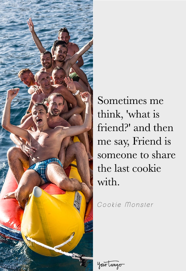 "Sometimes me think, 'what is friend?' and then me say, Friend is someone to share the last cookie with." — Cookie Monster
