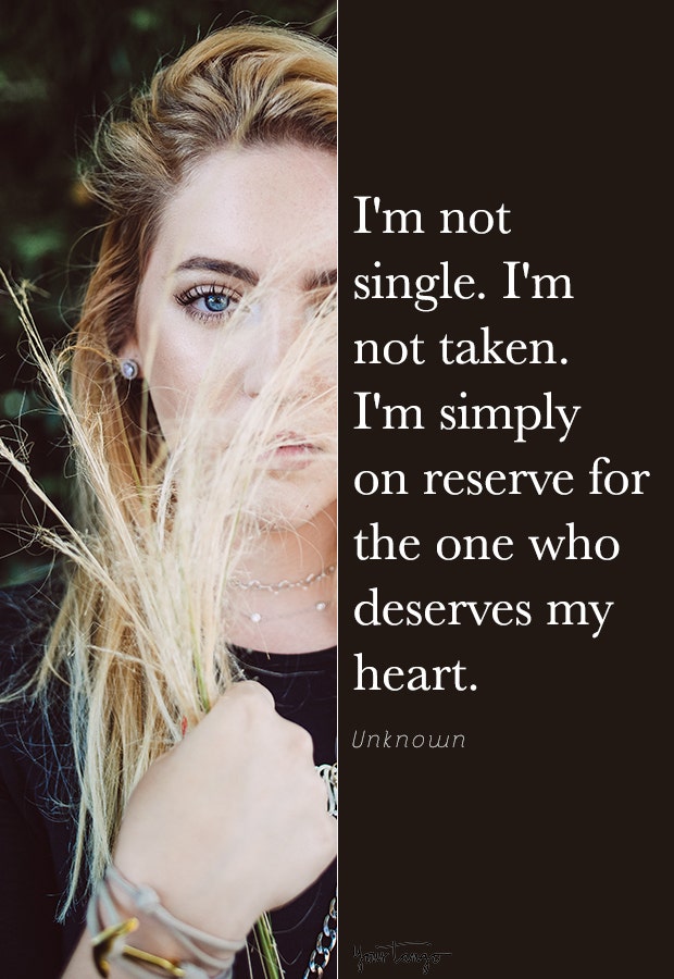 "I'm not single. I'm not taken. I'm simply on reserve for the one who deserves my heart." — Unknown