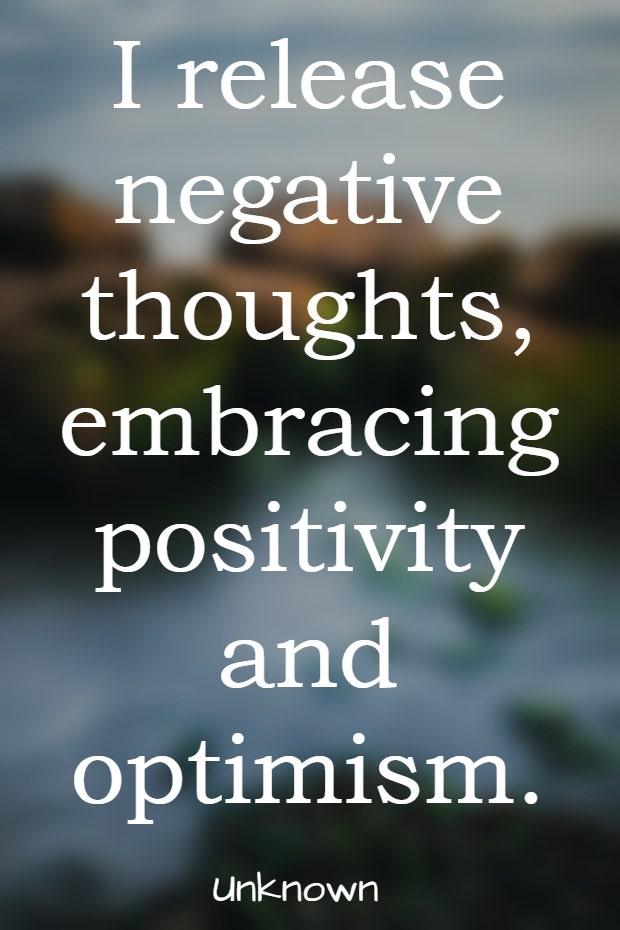 "I release negative thoughts, embracing positivity and optimism." — Unknown