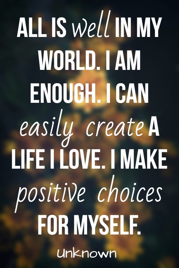 "All is well in my world. I am enough. I can easily create a life I love. I make positive choices for myself." — Unknown