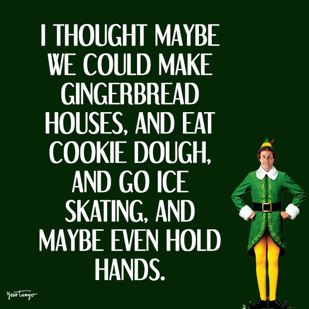 "I thought maybe we could make gingerbread houses, and eat cookie dough, and go ice skating, and maybe even hold hands."