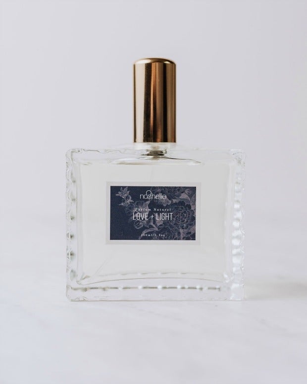 Nashelle's new Love & Light Perfume lights up any room with its floral and coconut scent. Each bottle is made with a heart to give back, as one plate of food is donated to families in need for each product sold.