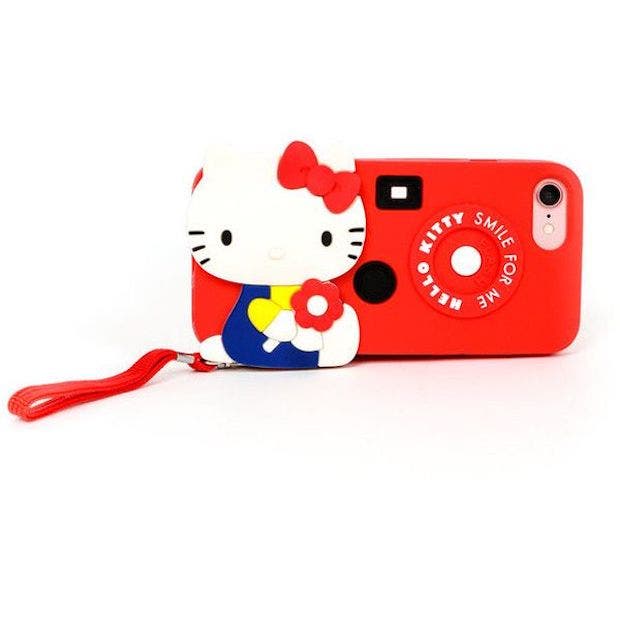 In 1976, Sanrio released the red Hello Kitty film camera. Today, we capture that original camera case design as a die-cut phone case. The design features Hello Kitty with her signature red bow, and blue and yellow overalls. This case fits an iPhone 7.