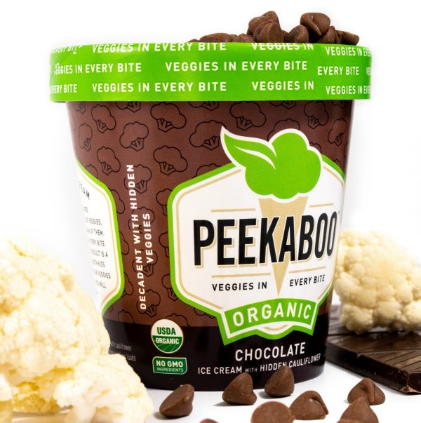 Peekaboo starts with delicious organic ice cream and mixes in vegetables that you can’t see or taste. It’s the best way to indulge in ice cream and feel good about it. For example, a pint of Mint Chocolate Chip (the most popular flavor) has 2 cups of hidden spinach. That's much better than digging into another sad salad.