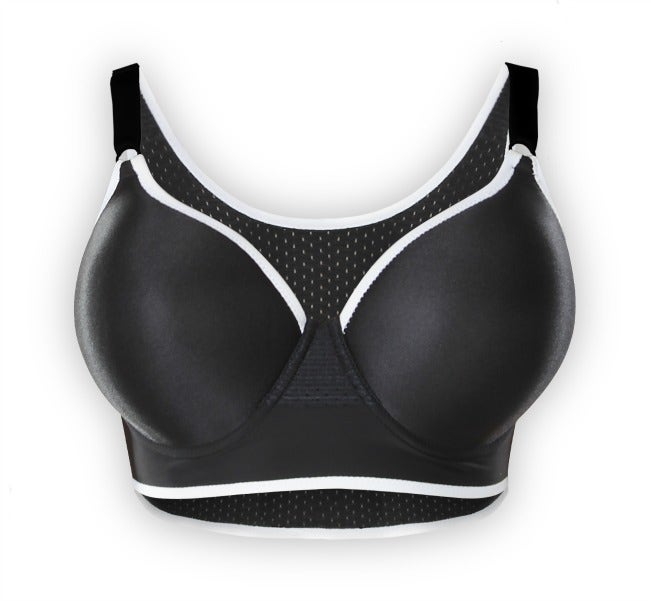 This bra has a compression fit so it sits close to body and minimizes bounce, plus size design incorporates an over-bust seam that creates shape and enhances fit with a double layer of soft, lightweight, moisture-wicking performance fabric. It also has a hidden powermesh lining that provides extra compression and support.