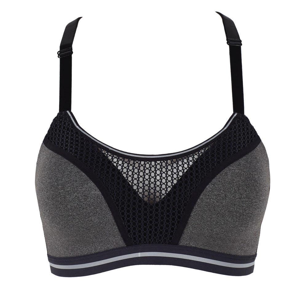 This is a wireless, mesh racerback sport bra that combines light impact with every day athleisure style. In a world connected to lingerie, it features a chunky open net, which offers a sexy look.