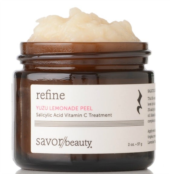 This 30-second beta-hydroxy-acid (BHA) peel contains a high level of vitamin C to exfoliate for skin clarity. A potent cocktail of 2 percent salicylic acid, gluconolactone-polyhydroxy-acid (PHA), yuzu oil, Kakadu plum, and lycopene extracts unclogs pores, brightens complexion, and revitalizes skin.