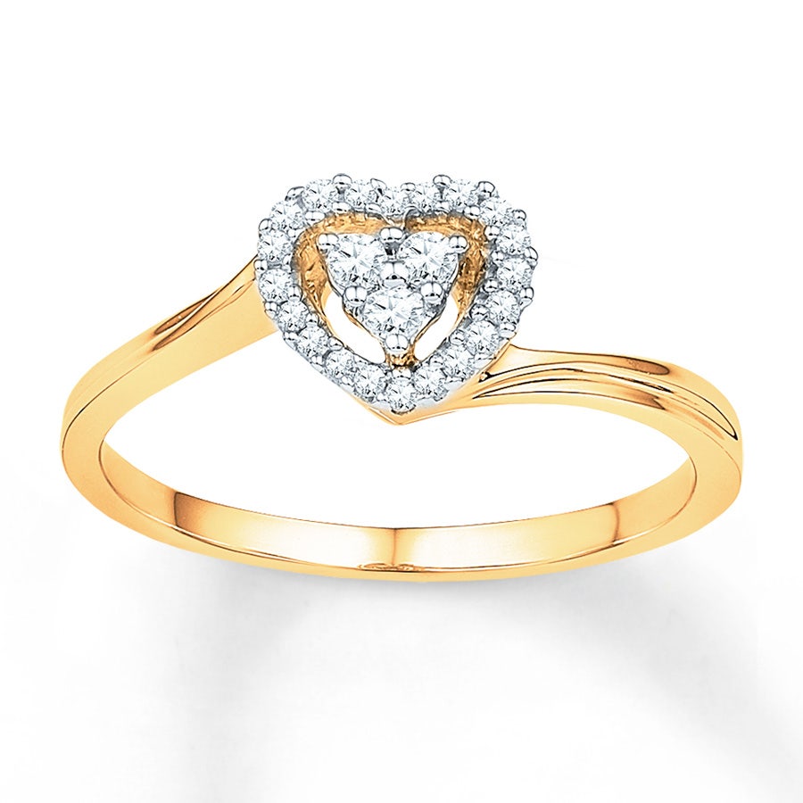 6. Heart Promise Ring 1/6 CT. T.W. Diamonds 10K Yellow Gold