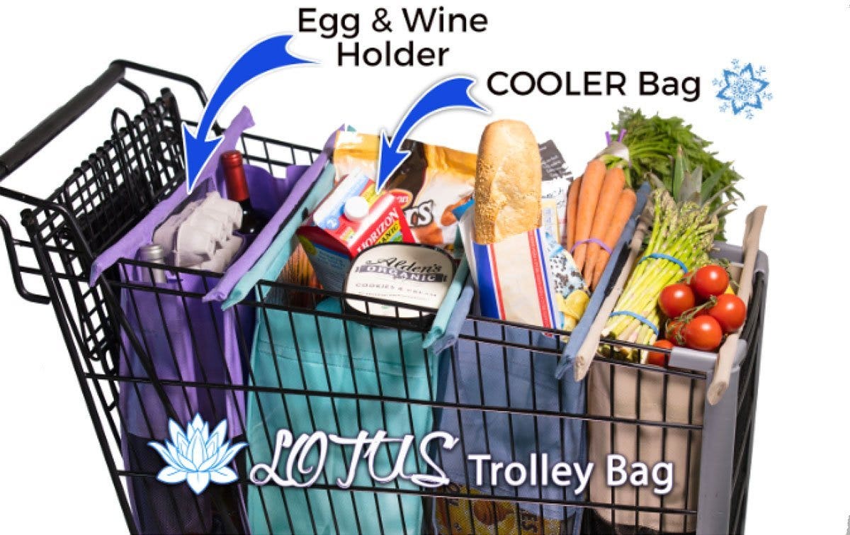 It’s a fit for a new couple to make shopping easier with the reusable 4-bag system (made from recycled water bottles) that spreads out accordion-style in your shopping cart, helping simplify checkout at the grocery store. The Regular Cart Version features include a thermal cooler bag, pockets for eggs, and sleeves for wine bottles. The bags are machine washable and reinforced with mold-resistant bottoms.