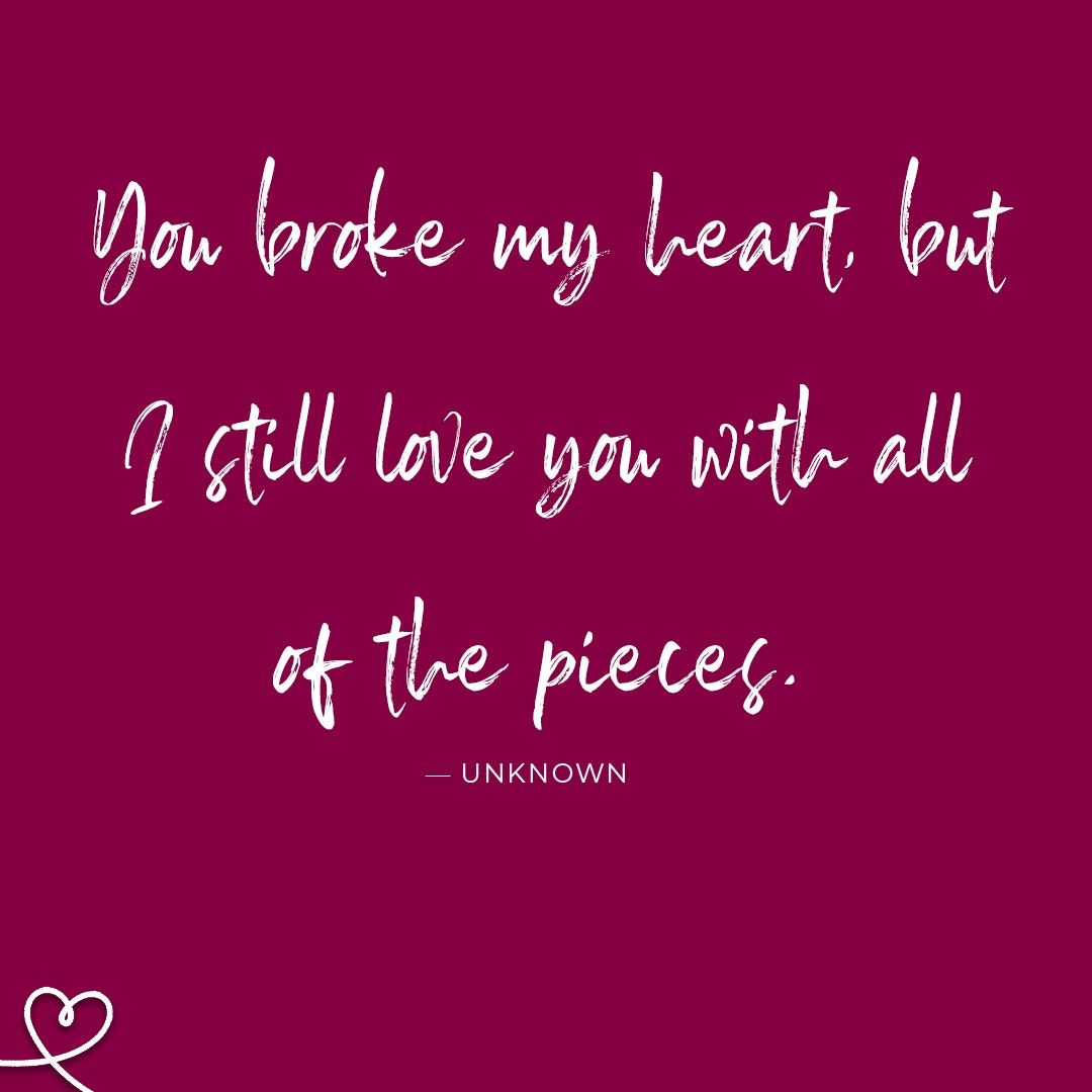 “You broke my heart, but I still love you with all of the pieces.”—Unknown