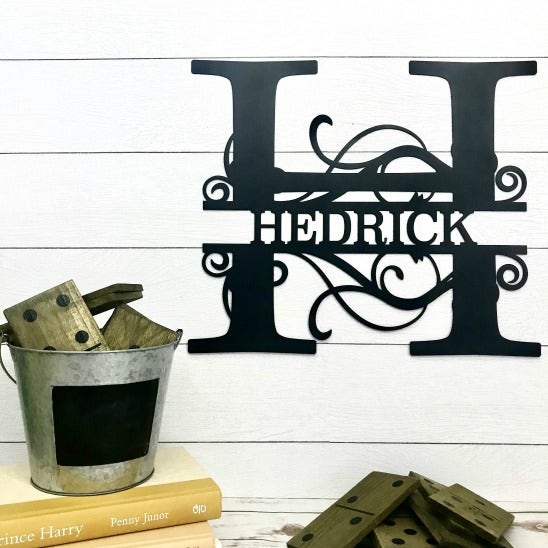 13. Split Letter Monogram Metal Sign