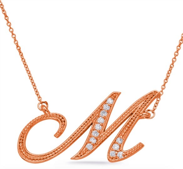 15. Rose Gold Diamond Initial M Pendant by Diamond Vault